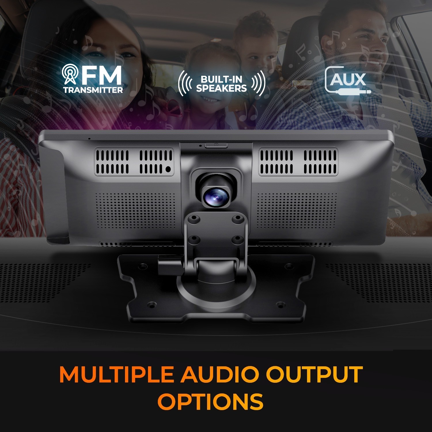 Vehicles lacking Bluetooth® enabled car stereos can still enjoy music and audio output from the C120 through its built-in 3.5mm auxiliary jack, wirelessly via the built-in FM transmitter, or simply through its built-in stereo speakers.