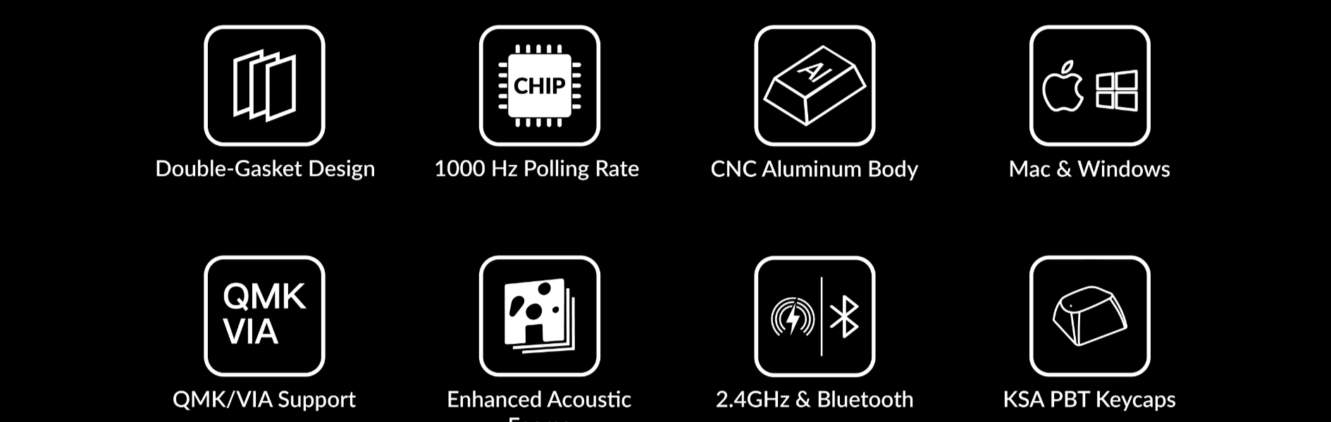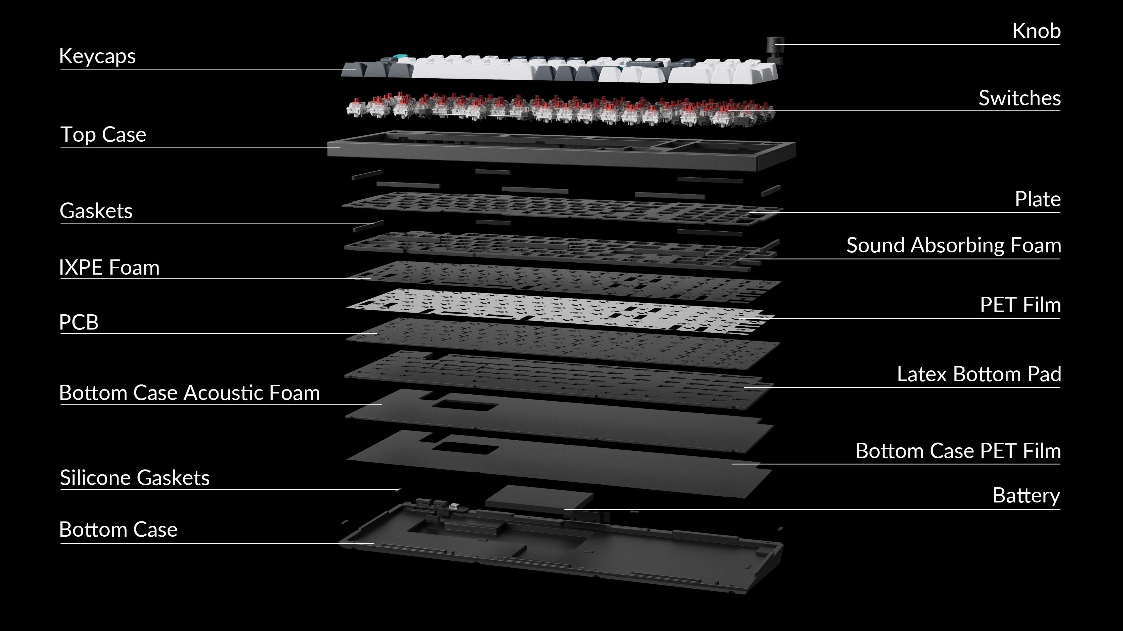 The Double Gasket Design is a new innovative structure in the industry. In addition to the gaskets on the plates, we added silicone pads between the top and bottom cases to significantly reduce the acoustic resonance between the metals and reduce the noise of the impacted metals.