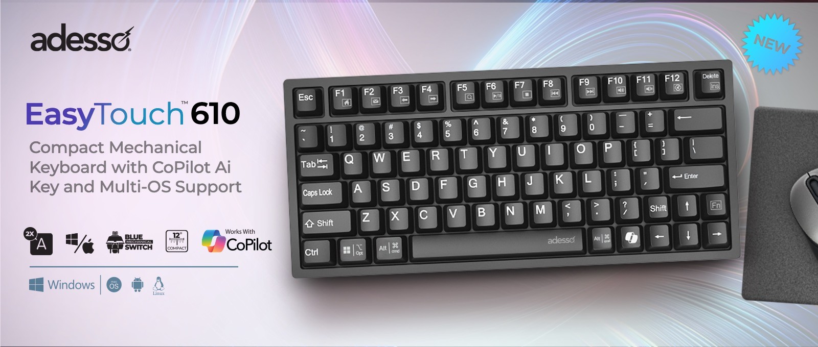 The EasyTouch 610 is designed to be a valuable typing companion in mixed OS environments. Featuring OS specific modifiers and command keys, it is the perfect companion for all your desktop and mobile devices.