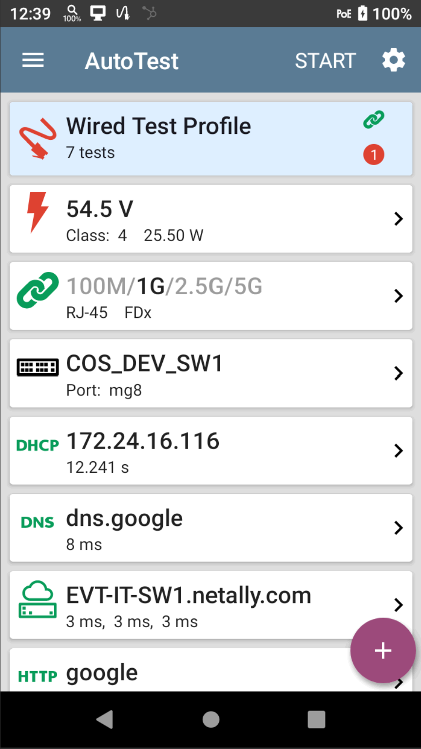 AutoTest is the most comprehensive testing application on the LinkRunner AT 3000. The app is fully customizable with savable test profiles and reusable Test Targets. Multiple profiles can be grouped allowing a single button press to validate connectivity on all VLANs. AutoTest results are automatically uploaded to the Link-Live platform after you claim your LinkRunner AT 3000.