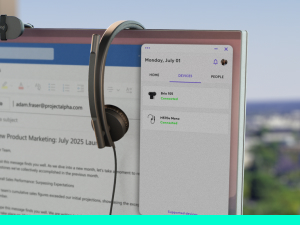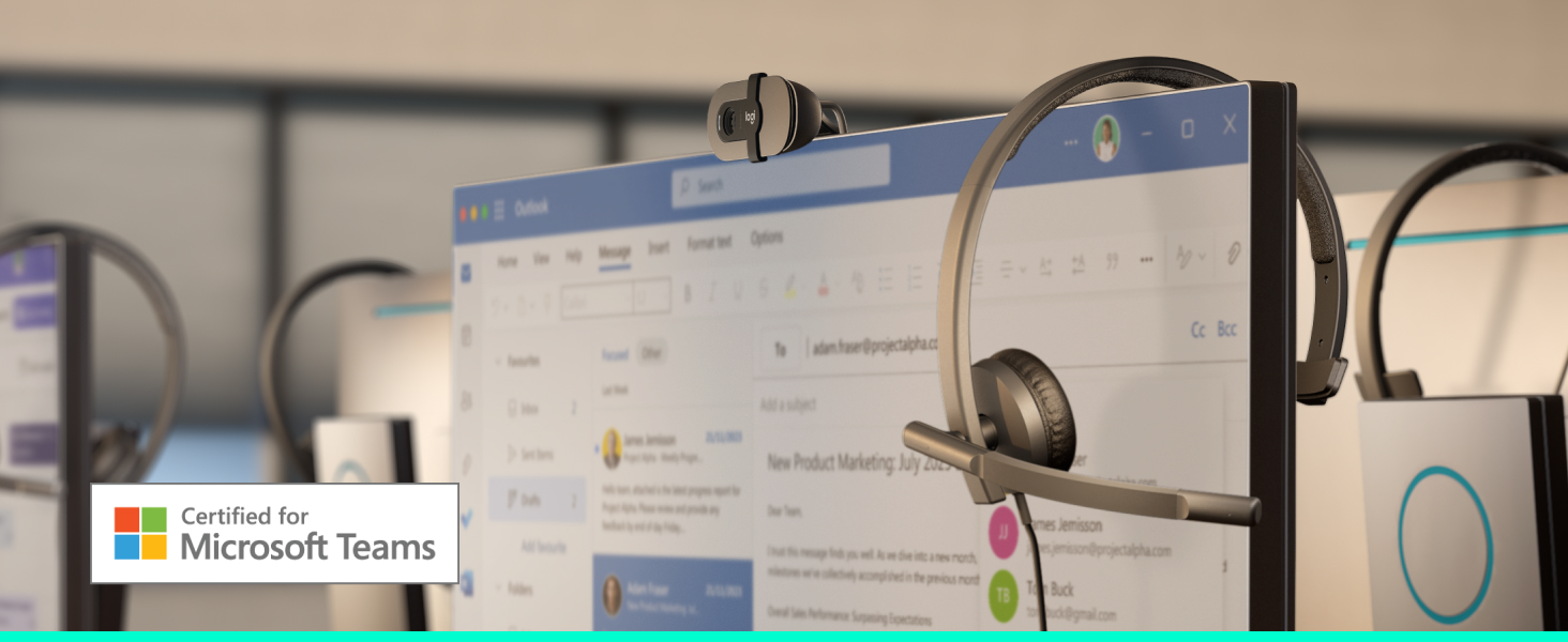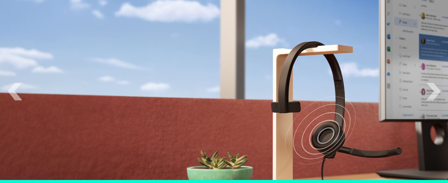 Customize the audio experience with the Logi Tune app**. Adjust sidetone, mic level, and more.
