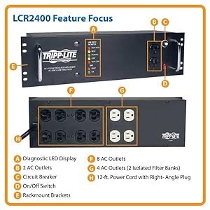 The LCR2400 provides comprehensive protection and performance enhancement for computers, A/V components and all electronics in a 3U rackmount format. It features built-in automatic voltage regulation to protect sensitive equipment from the harmful effects of brownouts and overvoltages, plus a 1440-joule surge suppression rating to protect against catastrophic surge damage. The LCR2400 also filters out disruptive line noise that can cause performance problems and corrupt or erase data. Exclusive Isobar isolated filter bank technology prevents mutual interference between connected components. With its 2400-watt output rating and fourteen outlets, the LCR2400 provides ample capacity for multiple items of connected equipment.
