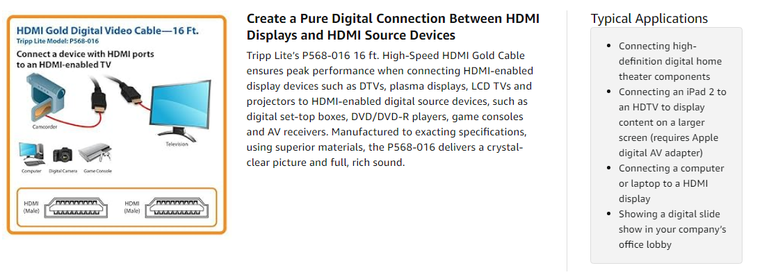 Perfect for home theater installations, the P568-016 supports full 1080p resolution as well as Ultra High Definition (UHD) resolutions up to 3840 x 2160 (4K x 2K) to accommodate the latest high-definition devices. It also has up to 10.2 Gbps of bandwidth capacity.