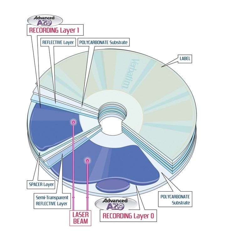 AZO also offers high sensitivity for reliable high-speed recording and high reflectivity to eliminate read errors. The thinness of the recording layer is also critical. The thinner the layer, the higher the sensitivity and power margin; therefore, the better the DVD works for high-speed recording.