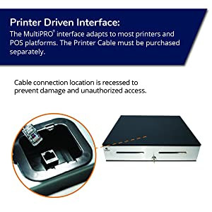 The MultiPRO 320 interface contains an 8P8C (RJ45) modular jack and can be used to connect the cash drawer to a 24V receipt printer or point-of-sale terminal for creating an integrated point-of-sale system (cable, printer, and terminal sold separately).