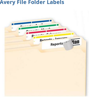 Keep your files organized, neat and professional with a wide collection of Avery File Folder Labels. They're simple to customize using free printable templates at Avery website or handwrite. Just choose from a variety of styles, colors and sizes to fit your exact organizational need.