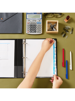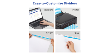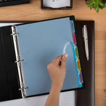 Label all divider tabs at once with the Index Maker Easy Apply Label stripClear labels virtually disappear on divider tabs for a printed-on lookDurable divider body with reinforced tabs that resist tearingTabs in white, soft pastels, bold solids or bright multicolorUse in medical document binders and tax organizer binders, to financial proposals, meeting presentations, and more