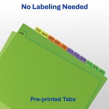 Pre-printed in black lettering on front and back allow for quick and easy organization. No writing or labelling needed.