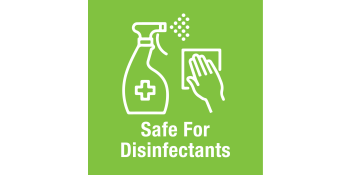 The poly material wipes clean with most non-abrasive household cleaners.