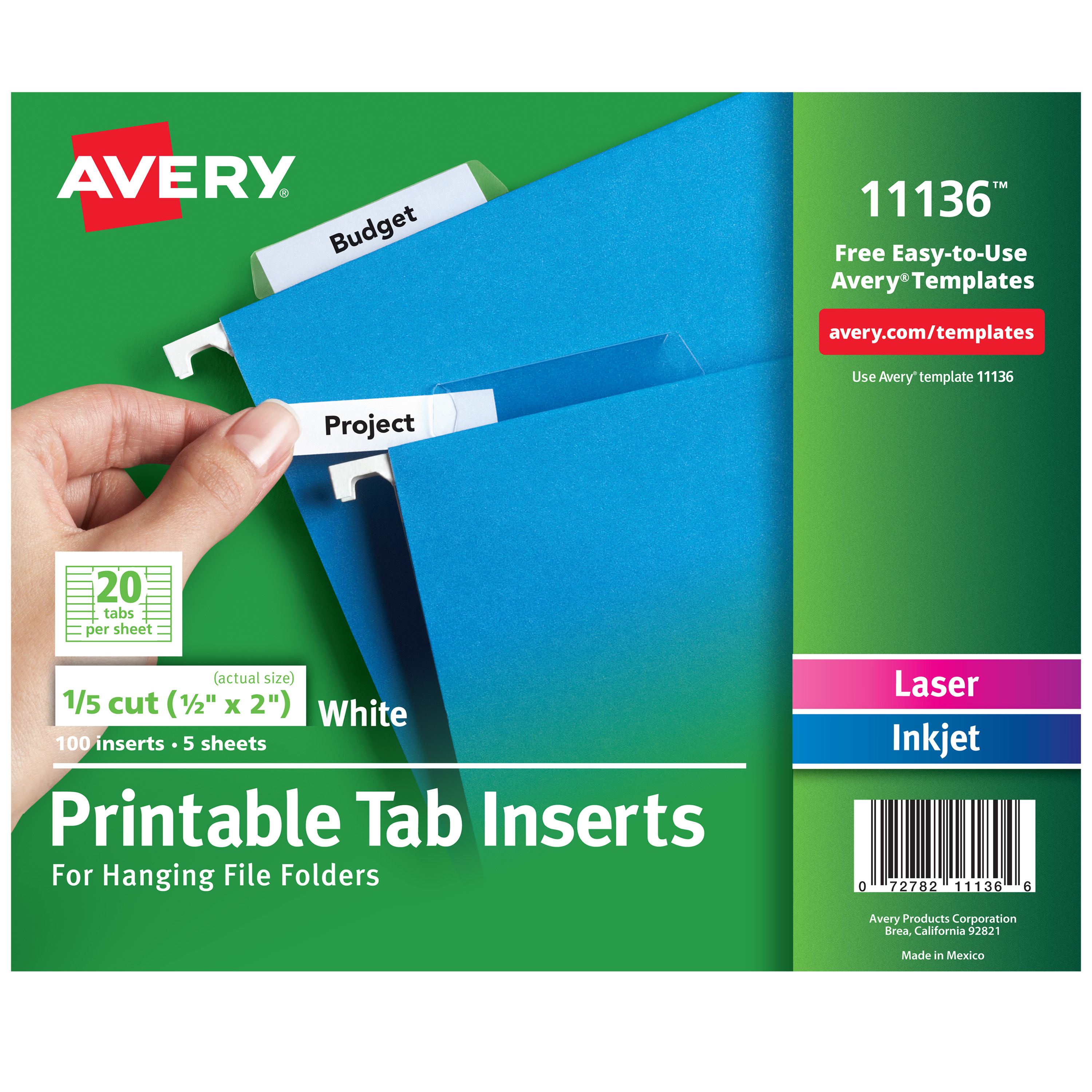 Use tabs on bound reports, personal organizers, reference manuals, catalogs and more. Print or write tab information for viewing from front and back. Durable, all-in-one tab construction adheres directly to documents or in hanging file folder tab slots. Each laser and inkjet printable sheet contains assorted, classic-toned tabs. White, paper inserts for laser and inkjet printers and typewriters. For 1/5 or 1/3-cut hanging file folders. Plastic tabs not included. Paper inserts for laser and inkjet printers. Includes plastic tabs with peel and stick adhesive. Tabs come in 1”, 1-1/2” or 2” length, each in clear or assorted colors. Durable tabs stick securely and are strong enough to turn pages, yet remove cleanly with no residue. Smudge-resistant tabs are writable with pens, markers, pencils and highlighters. Handwrite on paper inserts. Includes assorted color plastic tabs with peel and stick adhesive. Available in white paper or gray cloth. Handwrite only.