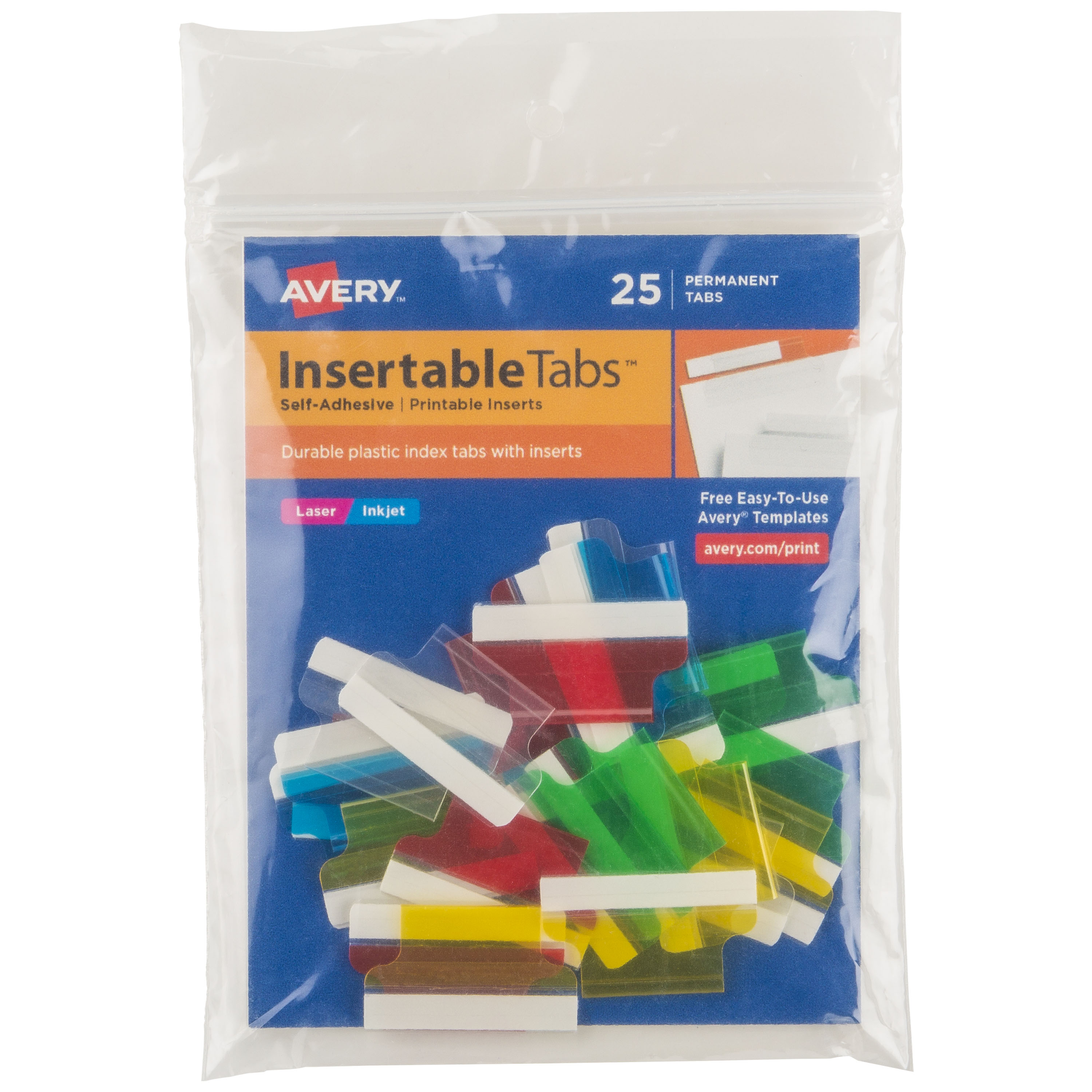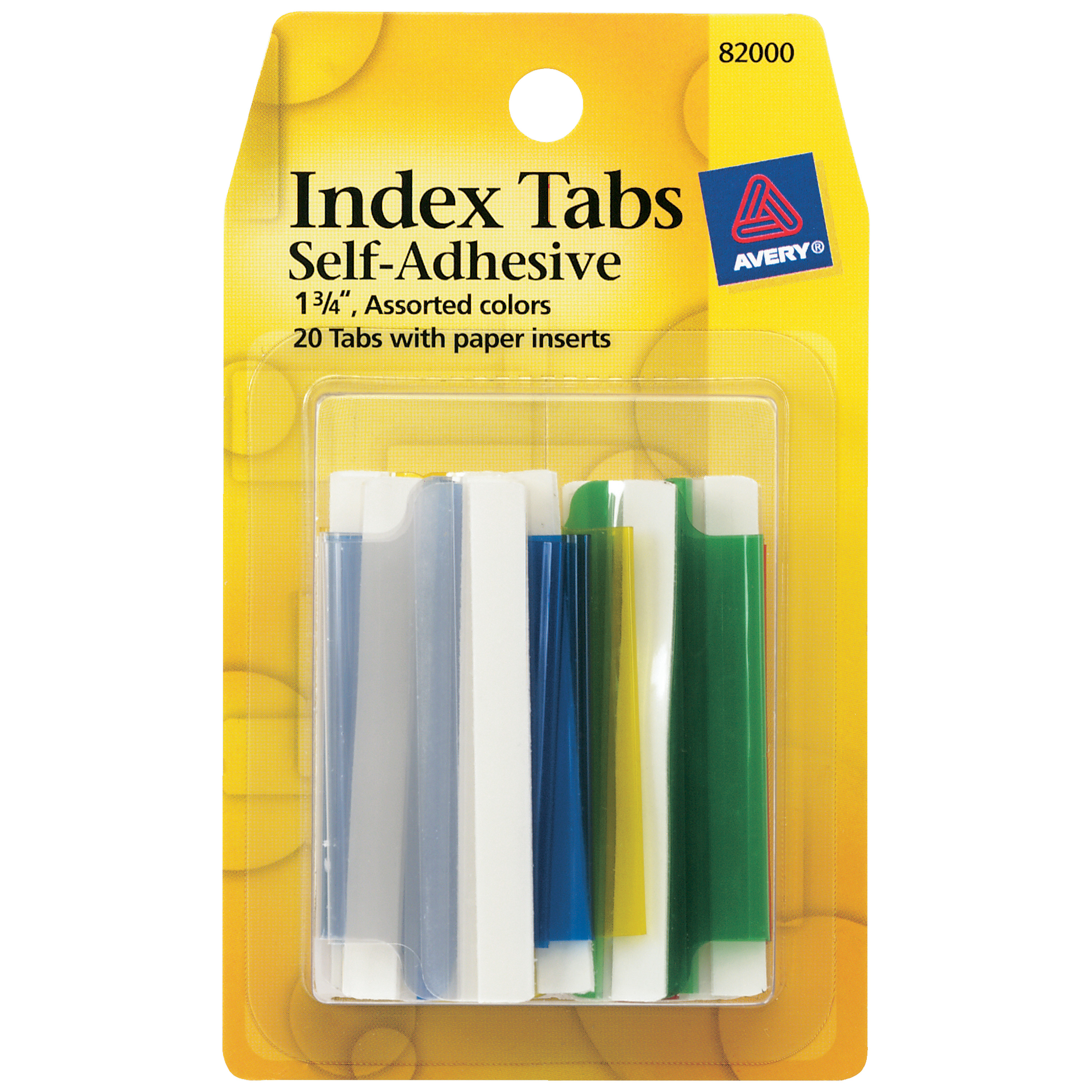 Use tabs on bound reports, personal organizers, reference manuals, catalogs and more. Print or write tab information for viewing from front and back. Durable, all-in-one tab construction adheres directly to documents or in hanging file folder tab slots. Each laser and inkjet printable sheet contains assorted, classic-toned tabs. White, paper inserts for laser and inkjet printers and typewriters. For 1/5 or 1/3-cut hanging file folders. Plastic tabs not included. Paper inserts for laser and inkjet printers. Includes plastic tabs with peel and stick adhesive. Tabs come in 1”, 1-1/2” or 2” length, each in clear or assorted colors. Durable tabs stick securely and are strong enough to turn pages, yet remove cleanly with no residue. Smudge-resistant tabs are writable with pens, markers, pencils and highlighters. Handwrite on paper inserts. Includes assorted color plastic tabs with peel and stick adhesive. Available in white paper or gray cloth. Handwrite only.