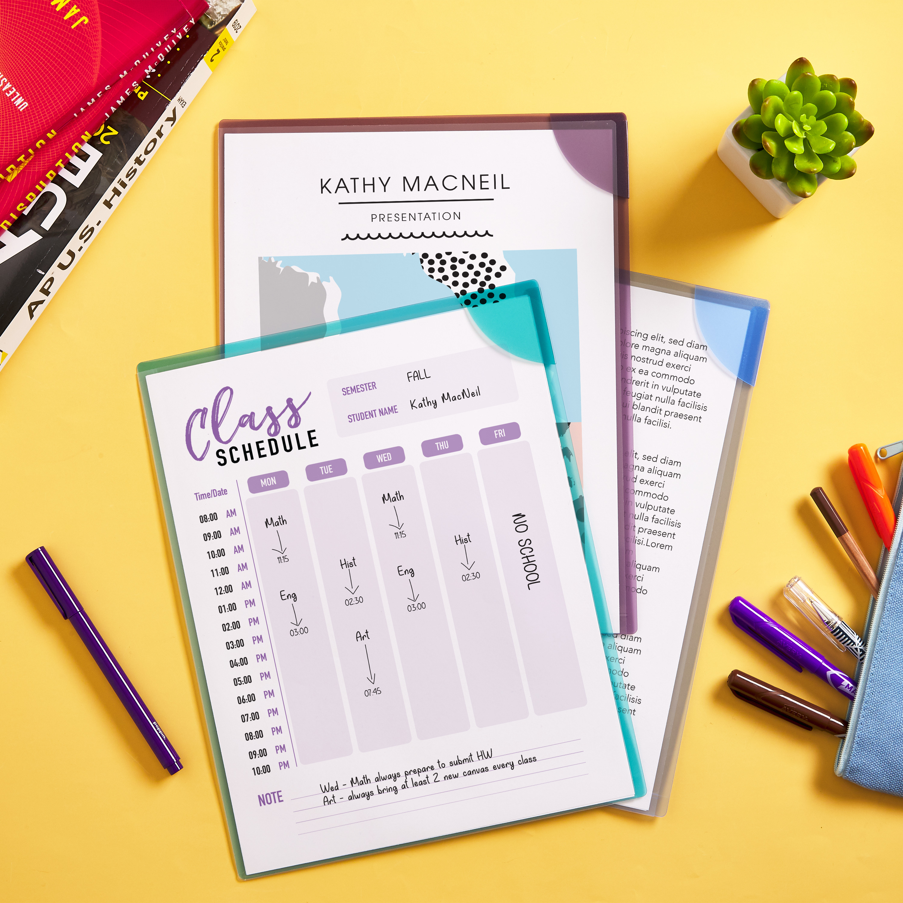 Organize projects or class reports, color-coding by semester or by subject