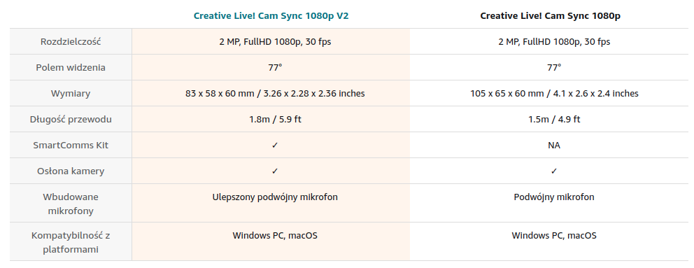 Creative Live! Cam Sync 1080p V2 oferuje filmy FullHD z szybkością 1080p / 30 FPS i polem widzenia 77 °, ulepszoną jakość obrazu i zrównoważony kadr, zapewniając bardziej angażujące rozmowy.