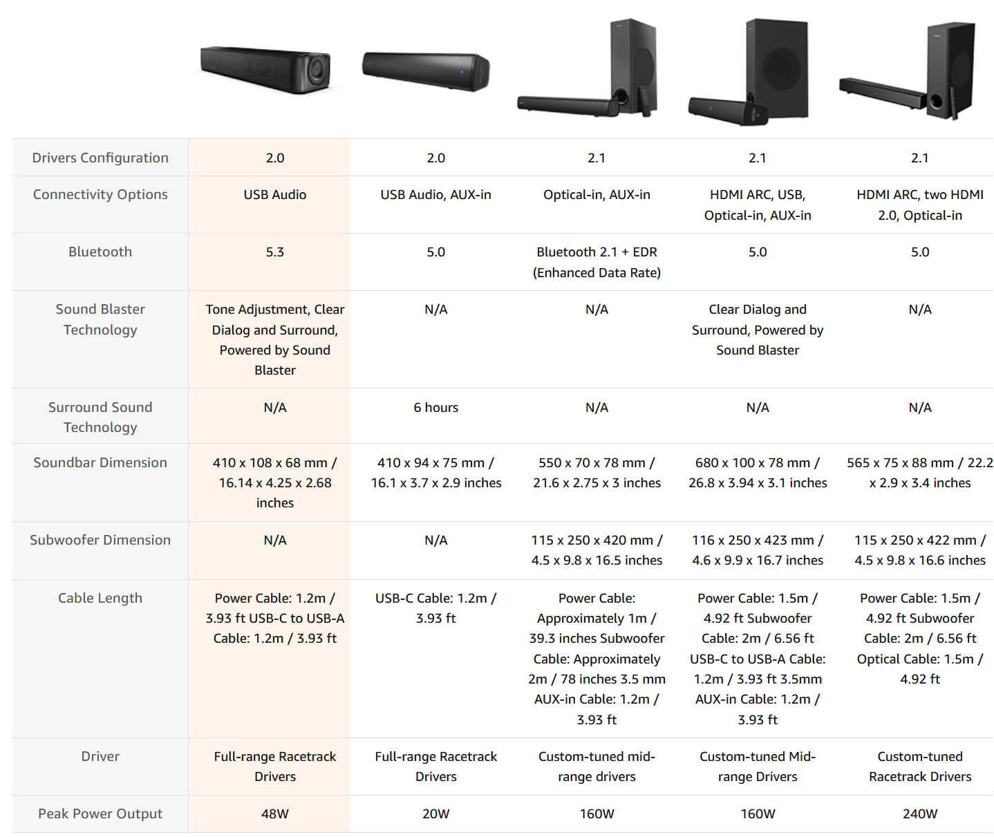 La Creative Stage SE est équipée des technologies audio de Sound Blaster, Clear Dialog et Surround, pour une meilleure intelligibilité vocale et une grande expérience surround.